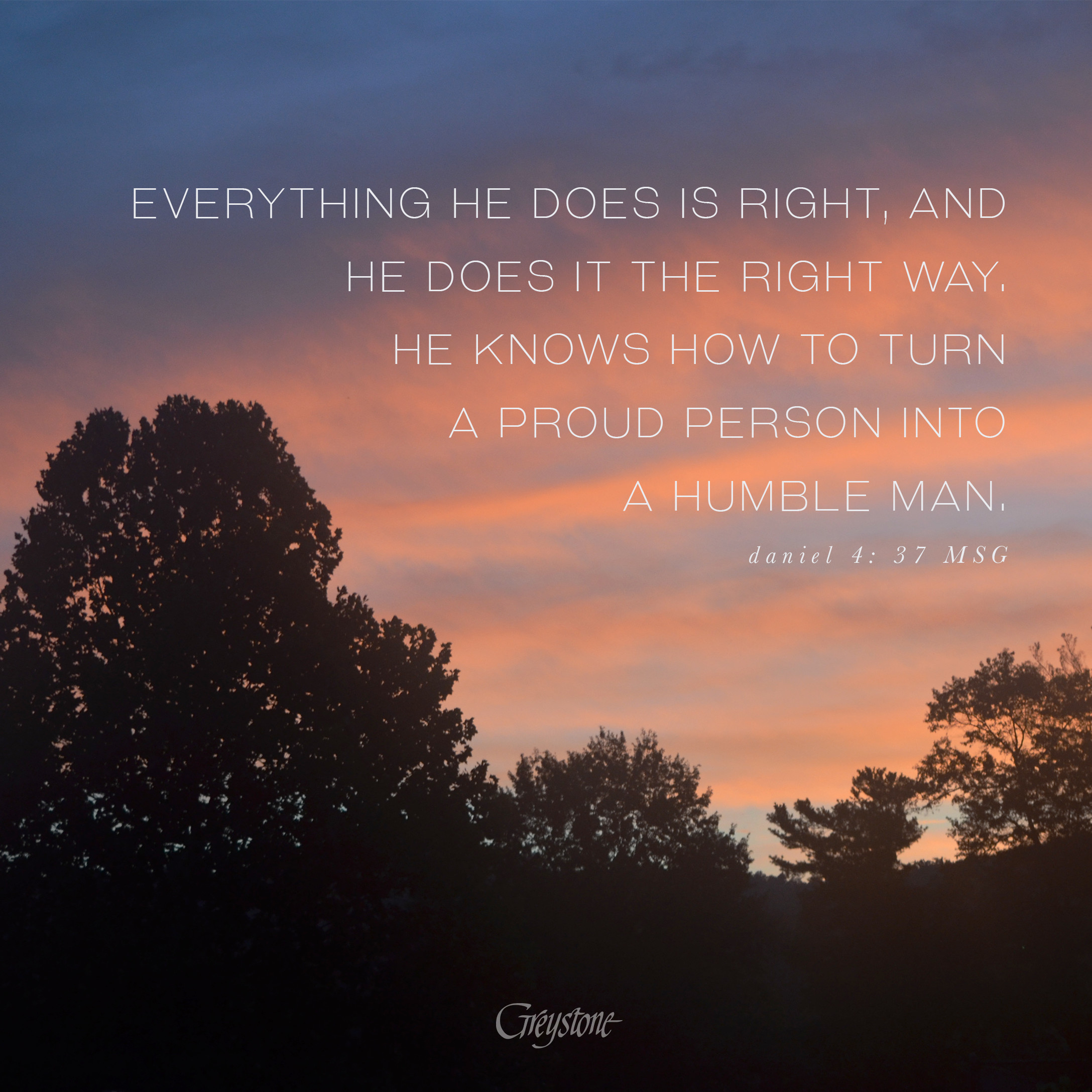 “At the same time my reason returned to me, and for the glory of my kingdom, my majesty and splendor returned to me. My counselors and my lords sought me, and I was established in my kingdom, and still more greatness was added to me. Now I, Nebuchadnezzar, praise and extol and honor the King of heaven, for all his words are right and his ways are just; and those who walk in pride he is able to humble.” Daniel 4:36-37